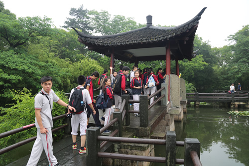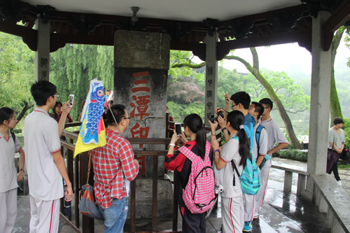 农历四月中的西湖,虽然没有接天莲叶,但是同学们仍收到了赠来的一枝江南春。在西湖,同学们走苏堤、望白堤、观三潭映月, 在江南烟雨中用诗词歌赋与历代的文人墨客进行精神对话;在绍兴,兰亭集、父子碑、曲水流觞、雨打风荷,魏晋遗风,令人神往,同学们聚在碑拓的兰亭集序跟前,竞相背诵,研究王右军留下的一笔一划;在鲁迅故居、博物馆,从“百草园”到“三味书屋”,同学们追寻一代文豪的人生轨迹,感受民族脊梁的精神风骨;在乌镇西栅,同学们以小组为单位,踏青石板、尝乌梅茶,亲身穿越百年的江南水乡;在南京,同学们拜访宏伟的中山陵,瞻仰国父孙中山先生遗像,感受先辈的家国情怀;而在南京大屠杀遇难同胞纪念馆,同学们则静默无语、沉痛哀悼,深深领悟“前事不忘,后事之师”。
