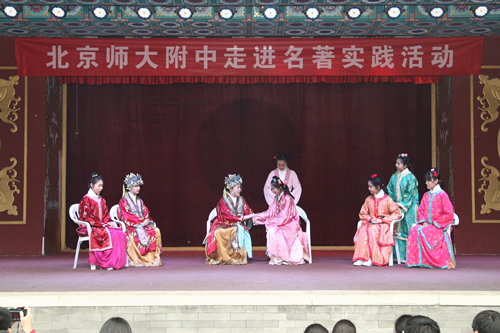 演出结束后,高一年级以班为单位参观大观园,并且在园内开展了吟诗和红楼猜谜等活动。本次“走进名著”的活动为我校高中学生了解古典名著、提高古典文化修养提供了有益的平台。