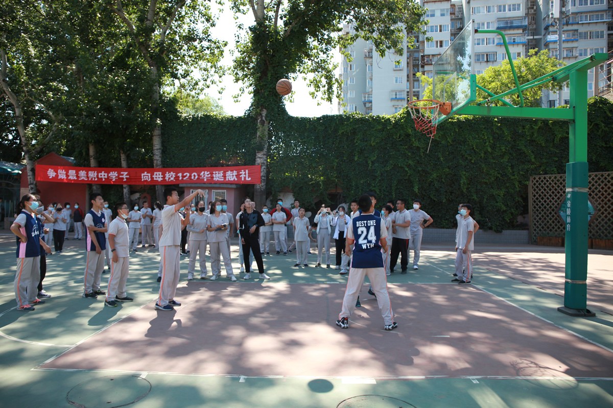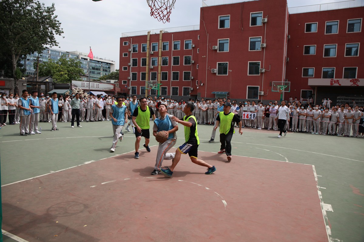 6月7日,在全部比赛结束后,通过篮球对抗赛选出的全明星队和教师队的友谊赛在南校区操场举行。双方队员你争我夺,左晃,右晃,过人,起跳,球进了!顿时,整个赛场上掌声,欢呼声,呐喊声此起彼伏。经过一番龙虎斗,教师队略胜一筹,以娴熟的攻防配合和技术取得了胜利。
