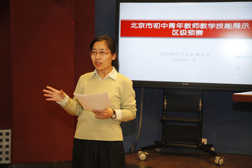 2014年12月22、23日,我校承办了北京市初中青年教师教学技能比赛的区级预赛活动。数学组唐巧、戴梦姣,英语组白丽娜、刘东杰,语文组许振寰、高敏,体育组郝兴杰、艺术组刘奕菲、科技组翟美丽共9位教师参加了此次预赛。9位参赛教师在教学设计的基础上分别进行了说课和微格展示,本次活动由科研室郑一丹老师主持。