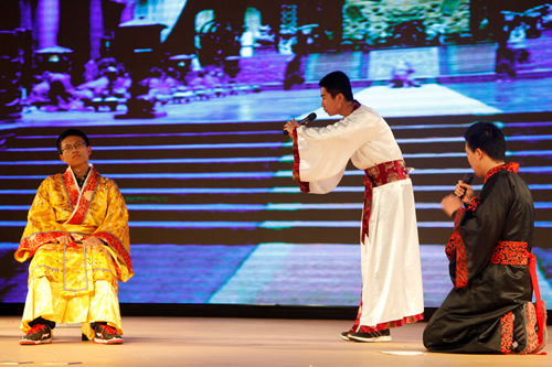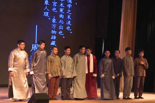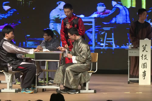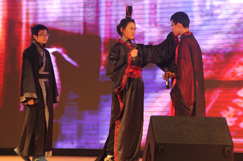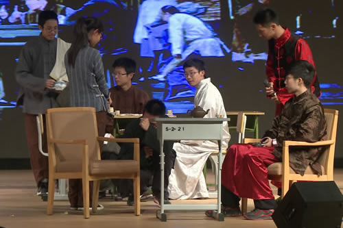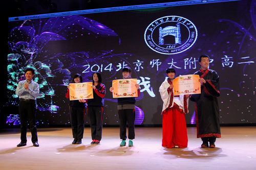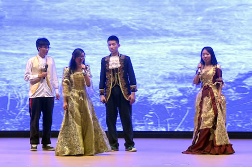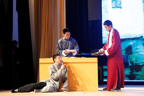 高二(1)班与高二(8)班都选择了《屈原》这部永不消逝的经典,并以不同的方式做了精彩的演绎。高二(6)班的《孔乙己》和高二(3)班的《雷雨》等都在对剧本的改编中,融入了同学们的独特体悟,让观众耳目一新。此外,《吴越之争》《大漠谣》《蚂蚁》《恋爱的犀牛》《罗密欧与朱丽叶》《仲夏夜之梦》也带来古典与现代交织、东方与西方交融的多种风格,赢得了师生们的热烈掌声。最终,高二(5)班的《茶馆》和高二(2)班的《沙家浜》获得了本届话剧节一等奖。
