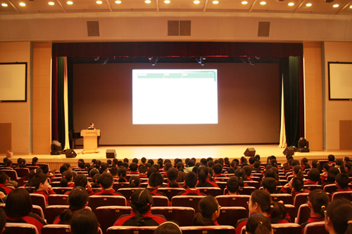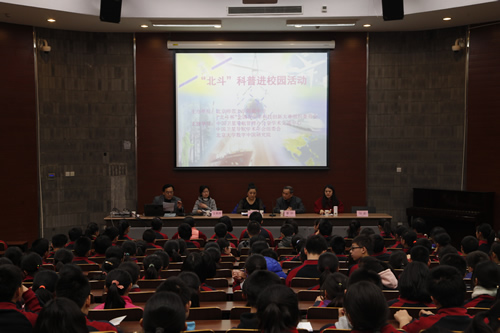 在12月22日,“北斗科普进校园”活动在我校全面拉开,为我校科技节活动画了一个圆满的结尾。“北斗科普进校园”活动由我校和“北斗杯”全国青少年科技创新大赛组委会主办,中国卫星导航管理办公室学术交流中心、中国卫星导航学术年会组委会、北京大学数字中国研究院协办。中国卫星导航定位协会首席专家曹冲研究员向初二年级的同学们介绍了我国自主研发的卫星导航系统,并做了题为《北斗系统彰显时间空间的力量》的讲座。