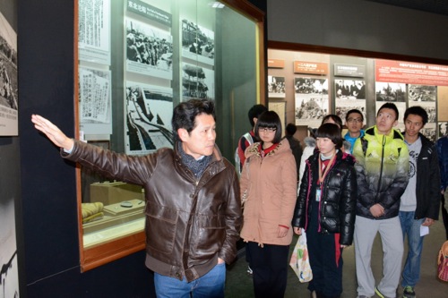 12月7日,在“一二.九”运动七十九周年和首个国家公祭日到来前夕,我校学生干部骨干100余人在副校长梁原草、教导处主任况莉、团委书记申浩和学生会指导老师张明瑶的带领下,来到中国人民抗日战争纪念馆共同纪念历史、缅怀先烈。梁原草副校长亲自给同学们讲解展览内容,言之殷殷,情之切切,同学们认真聆听,满怀震撼,一次次被抗战历史中的感人故事和伟大爱国精神深深打动。卢沟桥上,同学们感受着历史的沧桑,更坚定了心中的信念。