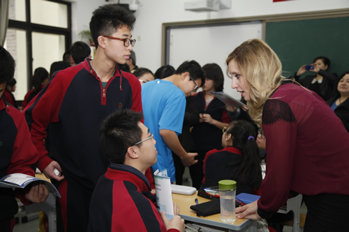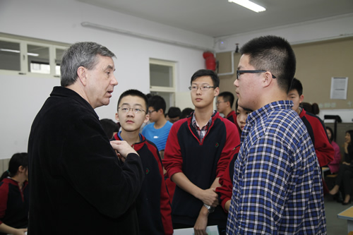 27日上午,美国Charlotte Christian School, Carrollton Christian Academy, Colorado Springs Christian Schools, Horizon Christian School等4所中学的校长及国际总监来校访问,并与高一AP班学生进行了深入座谈。同学们就自己感兴趣的问题与美国校长和国际总监进行面对面交谈,座谈非常热烈。我校学生流利的英语、热情阳光的精神面貌给来宾们留下深刻印象。同学们通过座谈增加了对美国中学的了解,增长了知识,开拓了思维。
