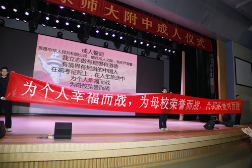 3月22日,附中百年礼堂,学校为即将迎来高考的高三年级同学在这里举办了十八岁成人仪式。