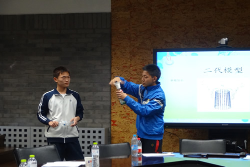 2014年3月22日,我校培养的第六批“翱翔计划”学员开展了基地校答辩活动。北京青少年科技创新学院办公室张毅主任、清华大学邓长生教授、北京科技大学曹林教授、北京航空航天大学蔡楚江副教授光临答辩现场对学员进行评审和指导。我校刘沪校长、王莉萍副校长、综合课程处吴士坤主任、科技组和物理组的多位指导教师出席了答辩活动。