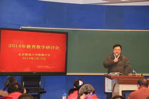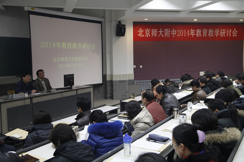 上午主会场的会议由许建勇副书记主持,刘沪校长首先致开幕辞。接下来会议分德育和教学两个分会场。德育分会场由梁原草副校长主讲了班级文化建设,与会的各位老师就此专题开展了研讨。教学分会场共有三项内容:冯健主任和吴士坤主任分别将2013年度教学科研中的各项工作进行了梳理和总结;周亚和刘春艳两位教研组长分别以研究课提升教师教学水平和教研组建设为主题发言;九个应试科目的教研组长分别汇报了各组提高课堂教学质量的实施方案。