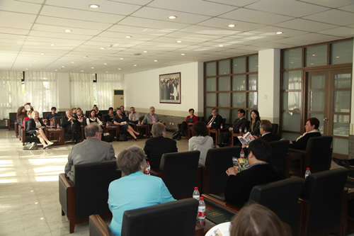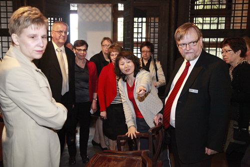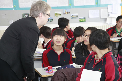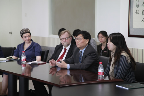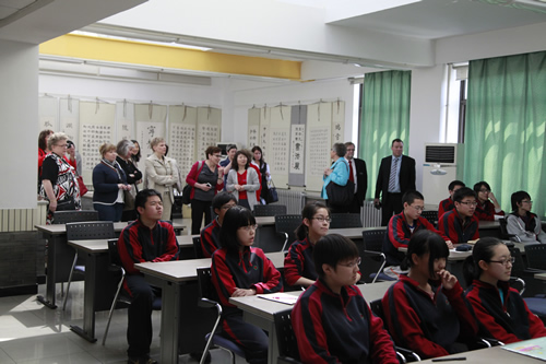 4 月 25 日上午,由芬兰教育服务专业人员协会组织的芬兰教育代表团一行 27 人来我校参观访问。该团主要成员为芬兰基础教育行政官员、中小学校长及部分教育专家。北京市国际教育交流中心刘洋老师陪同访问。我校刘沪校长在研修楼接待室会见芬兰教育团全体成员。随后,芬兰教育代表团在李华艳主任、况莉主任、冯健主任带领下,参观了我校的杏坛、三味书屋、美术教室和音乐教室。芬兰客人对我校的教学非常感兴趣,对师生的表现大为赞赏。参观后,我校领导与芬兰教育代表团成员就中芬教育差异、走班教学以及今后的合作交流进行了深入而热烈的讨论。周丽敏、曹浩文、刘文丽、于月芳老师参加了接待。