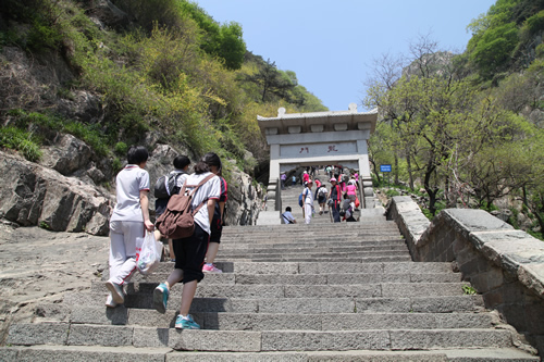 孟子曰:“孔子登东山而小鲁,登泰山而小天下。”如今,同学们也效仿古人登泰山而观苍茫天下。大家从红门出发,一路登上南天门,玉皇顶。路途中,远方飘来的神乐和鸡鸣声时时叩击着同学们的心灵,冲散了大家心中残留下的紧张压抑。一路有书法石刻,清流击水,险峻奇景,绿树清风为伴,仰望泰山之弥高,反观自身之渺渺,大家在心情得到放松的同时,心中生出更多对自然宇宙的敬畏之情。登泰山之行,同学既体悟到“登高必自卑”的内敛、“山高人为峰”的豪迈,更感受到团队的力量、集体的温暖。