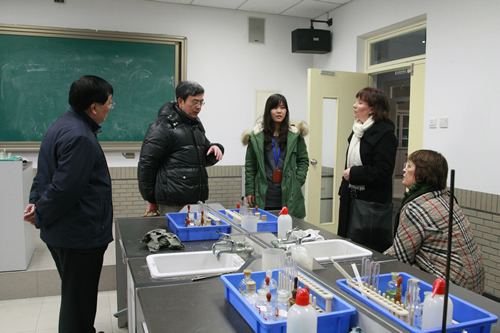 会见后,Klotz博士一行参观我校的杏坛、三味书屋、钱学森纪念馆及计算机教室和化学实验室,并在礼堂观看了我校附中艺术团的演出视频。师大附中的风采给德国客人留下了深刻的印象。徐兰、马桂君、周丽敏、赵敏、李丽等老师和正在我校进行为期一年交流学习的两位德国学生丽娜、文斯参加了接待。