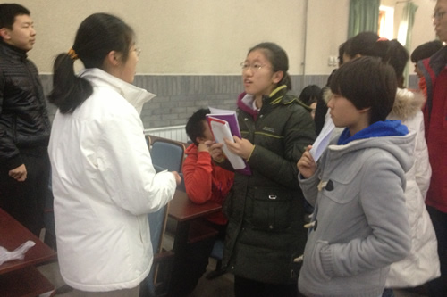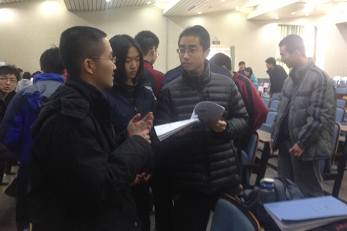 在校友们介绍了自己的学校与专业情况之后,高三的同学们就迫不及待地离开座位,找到学习自己心仪专业的学长学姐咨询起来,现场气氛十分热烈:从专业录取情况到大学里的特色学习内容、从当初某科目的学习小窍门到报志愿时破釜沉舟的决心,高三同学们在与学长学姐的交流中,获得了在网络上找不到的一手资料、了解到了最贴近现实的成功案例。大家还一同观看了北京大学、北大光华管理学院、清华大学的宣传视频,进一步领略到两所高校独特的学术气息与治学传统。