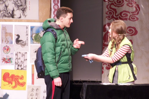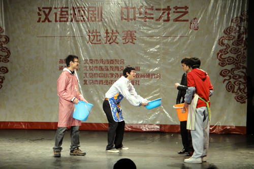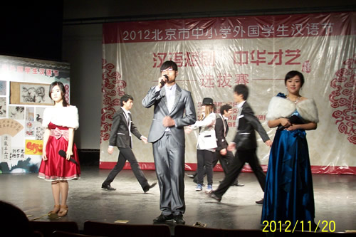 在2012年北京市中小学外国学生汉语节活动中,我校国际部成绩喜人!师生同台的歌舞节目获中华才艺大赛一等奖,短剧《逛街》获二等奖,《找网吧》获三等奖。选送的两幅留学生软笔书法作品均获二等奖。