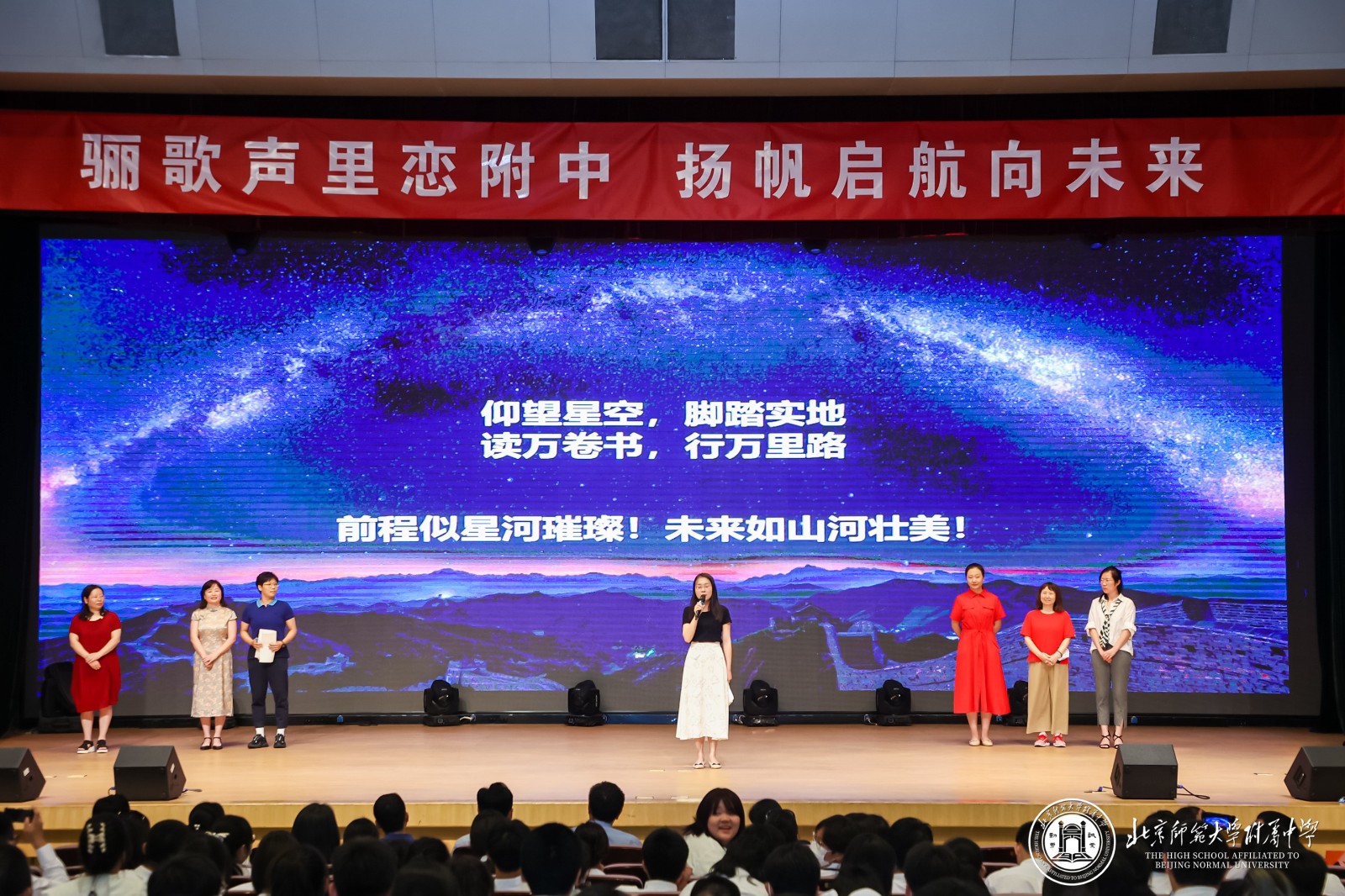 2022年7月19日,主题为“骊歌声里恋附中,扬帆启航向未来”的2022届初三毕业典礼,在北师大附中百年会堂隆重举行。学校领导及初三年级的全体师生参加了典礼。