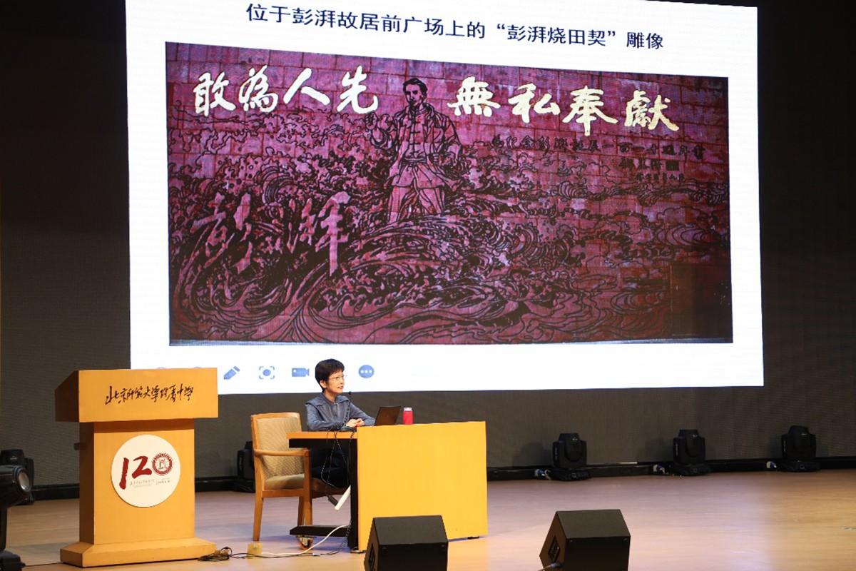 彭湃烈士之孙女、彭士禄院士之女彭洁女士为北师大附中的师生们带来了一场精彩的讲座。讲座主题为《忠于理想的两代人——讲述爷爷彭湃烈士和父亲彭士禄院士的故事》。