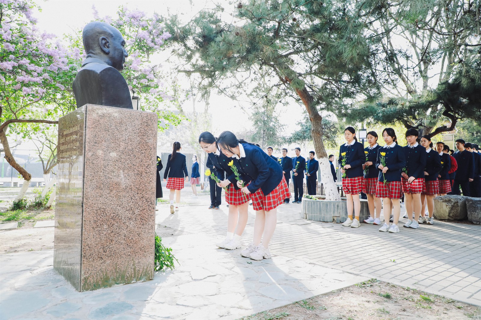 学生代表朗读祭文后,师生们向附中的老校长和两位杰出校友塑像行三鞠躬礼并列队敬献鲜花,表达附中人对先辈们的追思与景仰。