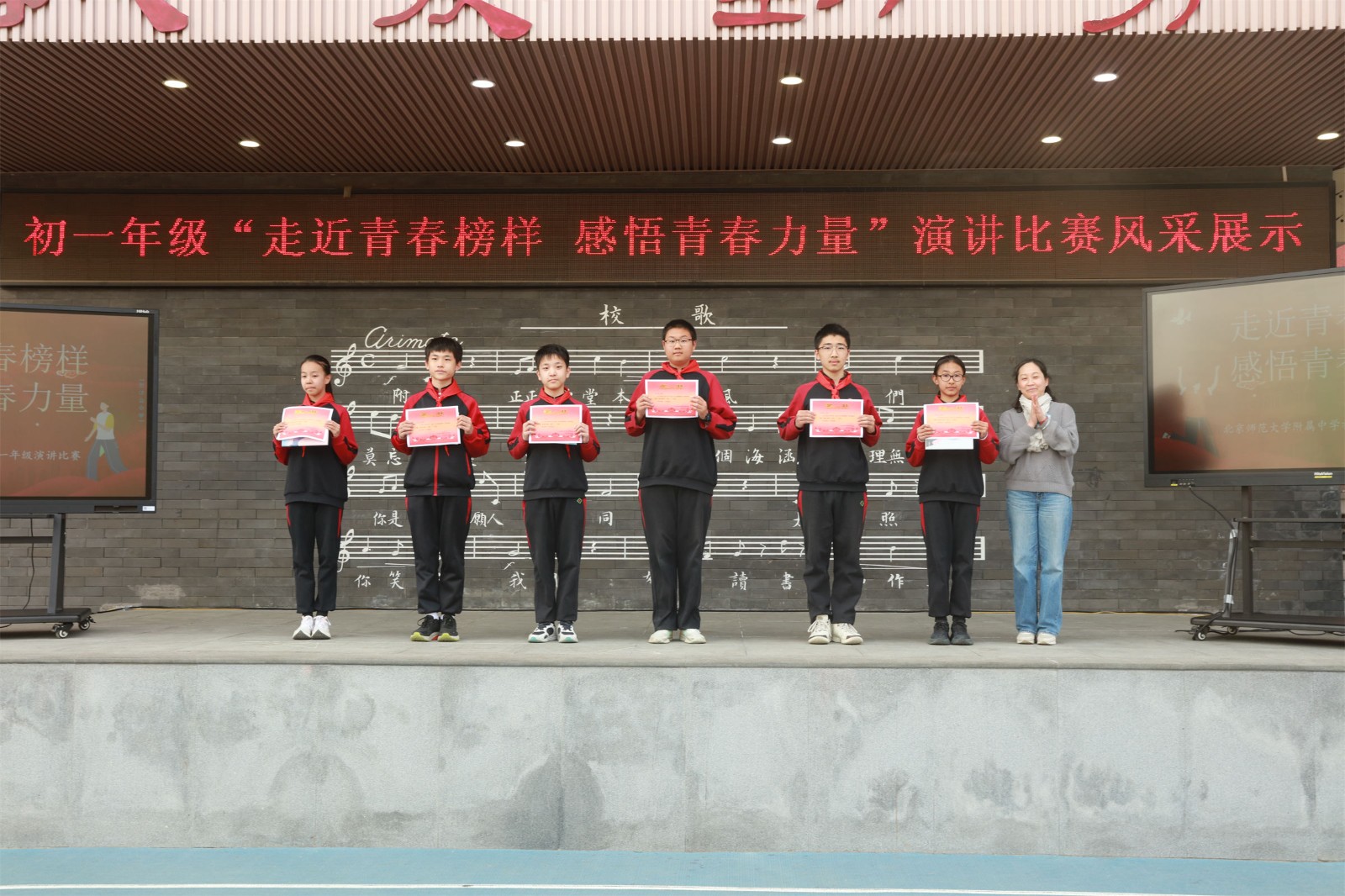 本次演讲比赛历时一个月,经过班级初选、年级角逐的层层选拔,评委老师从内容深度、语言表达、舞台感染力等维度进行综合评判,最终评选出一、二、三等奖及优秀奖。在比赛现场,选手们或慷慨激昂,或深情款款,将“青春”与“榜样”诠释得淋漓尽致。从历史先贤的智慧箴言,到革命先烈的热血壮举;从时代楷模的默默奉献,到身边师长的点滴善行——一个个生动的榜样故事在舞台上鲜活起来。辅以精心制作的PPT与背景音乐,选手们用声音与画面交织出一幅青春与榜样共鸣的画卷。