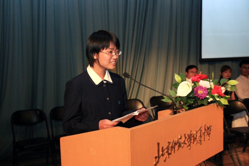 接下来的是隆重而庄严的成人仪式。当学生们依次从台上走过,从刘沪校长手中接过成人纪念册的一瞬间,学生们仿佛跨越过了一道无形的门,从少年进入成年,由稚嫩转变为成熟,从此将未来牢牢握在自己手中。校长,学生代表,家长代表依次发言,每一句话语里都饱含着祝福和期待。最后教师代表刘美玲老师的发言更是催人泪下,那一字一句中都寄托着殷殷期盼,不仅让老师哽咽了声音,更让许许多多同学也红了眼眶。那短短数十分钟的发言,对于学生们来讲,是人生道路上一次新的指引,是老师给予学生们的最好的送别礼物。