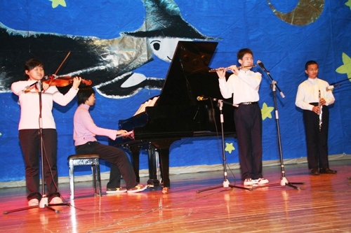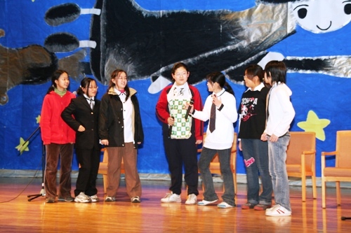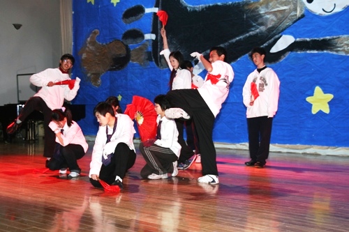 2006年岁末,我校“百年会堂”里不断传出欢歌笑语,各年级新年联欢会正在这里演绎。学生们精心排练了一台台精彩的节目,学生们的艺术才华在这里展示。礼堂里,同学们高举着双手在挥舞,热情洋溢的在呼喊,焕发青春的激情在倾泄,这里是欢乐的海洋,是心灵的聚会。喜迎新春的元旦联欢会,展现了附中学子良好的精神风貌,进一步增强了师生们的凝聚力,为新的一年翻开了精彩的一页,为全新的一年绘出更加多彩的一笔。