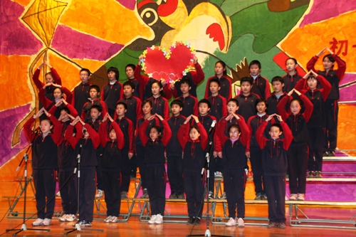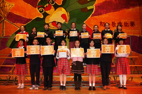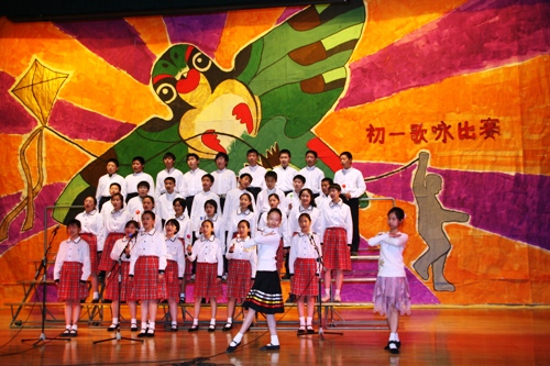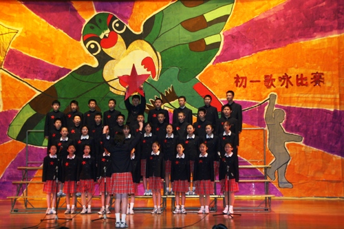 3月19日下午,我校初一年级成功举办歌咏比赛;初一8个班参加了比赛,内容为国歌或校歌再加一首任选曲目。王玉清校长、李磊主任等校领导观看了演出。 各班同学都经过了精心的准备,他们身着整齐的制服,迈着坚定的步伐走上舞台,充分展现了各班同学良好的精神风貌。初一(7)班学生身佩着鲜红的五角星,唱起了传统的革命歌曲“红星照我去战斗”,以激励自己发扬革命传统、奋发学习、勇创佳绩,最终夺得了年级第一名。初一(6)班以微小的差距排名第二。此外,还评出了最佳指挥、最佳伴奏、最佳创意等多个个人和集体奖项。赛后,艺术组齐宏老师作了精彩的点评。年级组长赵凤琴老师宣布了最终评奖结果,王玉清校长为获奖的集体和个人颁发了奖状。