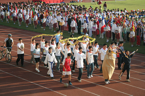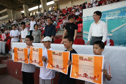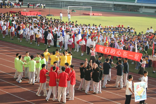 9月29日,在先农坛体育场举行了优米软件下载方法2006年模拟奥林匹克运动会。出席开幕式的有宣武区体育局包川局长、宣武区教委奥运办吴彦胜主任 、区教委体委科夏淑敏科长和我校全体校领导。模拟奥运会的新颖形式让同学们对世界和平友好,对奥林匹克精神有了更深的认识和理解。尤其是入场式,每班代表一个国际 奥委会成员国家或地区,各班同学身着代表各个国家或地区特色的服装,手擎国旗、展示牌,用新颖的队形、良好的精神状态展现出了附中人的活力与风采,受到了领导们的交口称赞。本次模拟奥运会在公平、友好、热烈的竞赛气氛中圆满结束,给同学们留下了深刻印象。
