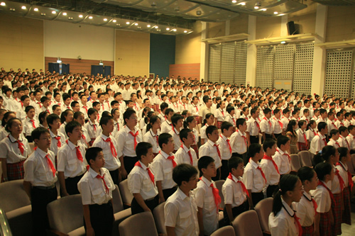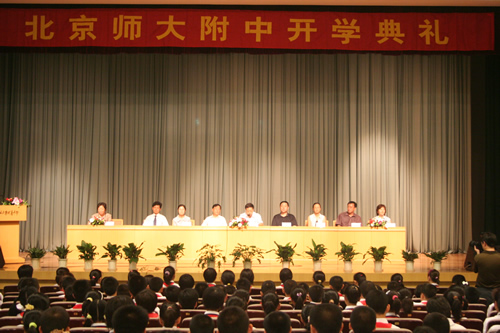 新学年开学的第一天,学校举行了隆重的开学典礼。中共宣武区委书记唐大生,宣武区教工委书记郑然。学校领导刘沪校长、王玉清、王莉萍、李敏副校长、许建勇副书记、校长助理梁原草、工会主席兼交流中心主任全力老师在主席台就座。会议在庄严的国歌声中开始,刘沪校长首先发言,附中新、老生代表发言时表示:新的九月,应有新的激情,新的昂扬,新的梦想!在新的一年里为理想脚踏实地地努力奋斗,尽情书写人生。最后,区委唐书记讲话勉励附中学子,发奋学习,报效国家。