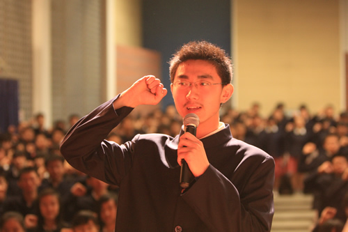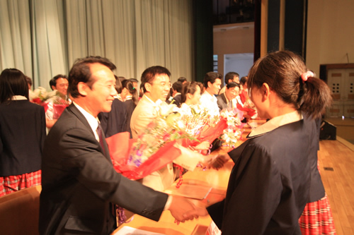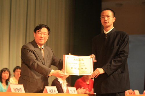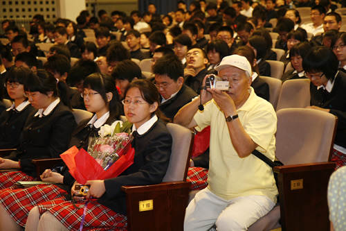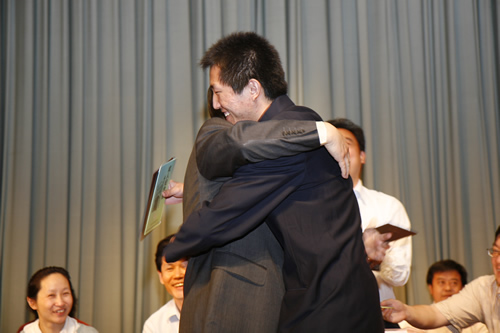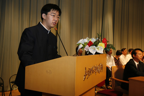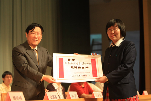 典礼上,刘沪校长为每一位同学颁发了成人纪念册及毕业证书,并殷切地期望同学们将来不论你们走到哪里,从事什么工作都要不负众托,不辱使命!勇敢的迎接人生的一个又一个挑战,为母校增光。家长代表我国著名的艾滋病学专家吴尊友先生发言中首先向同学们走进成人的行列表示深深的祝福和诚挚的祝贺!并谆谆教导同学们要学会负责:对自己负责,对家庭负责,对社会负责,对国家负责。要牢记师大附中“诚、爱、勤、勇”四字校训。这四个字,是做人之本,是成就事业、实现理想之基石。学生代表吴天群同学及教师代表李宝宏老师也发了言。学生向辛勤的园丁献上束束鲜花,师生相拥而泣……