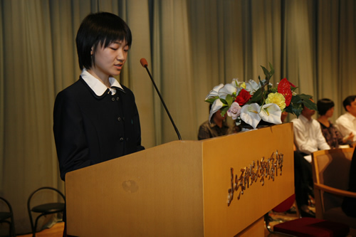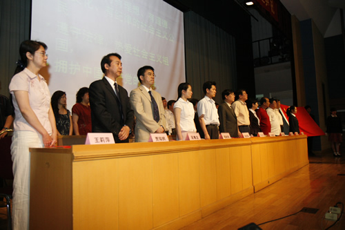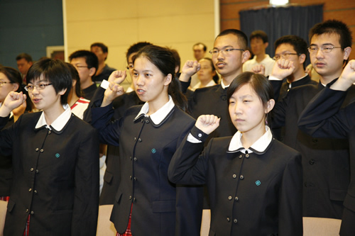 “服务他人,奉献社会;崇尚科学,追求真知;完善人格,强健体魄,为中华民族的富强、民主和文明,艰苦创业,奋斗终身!”