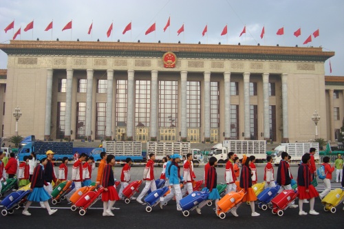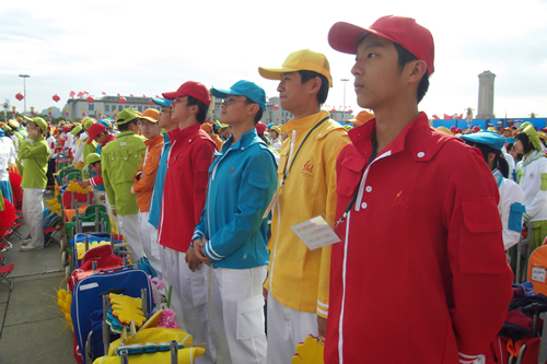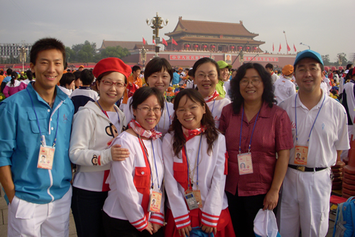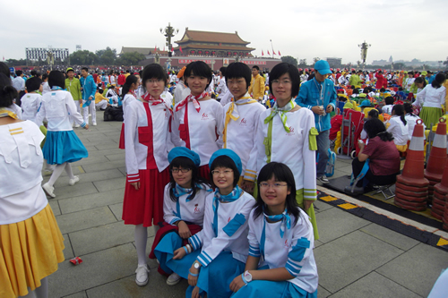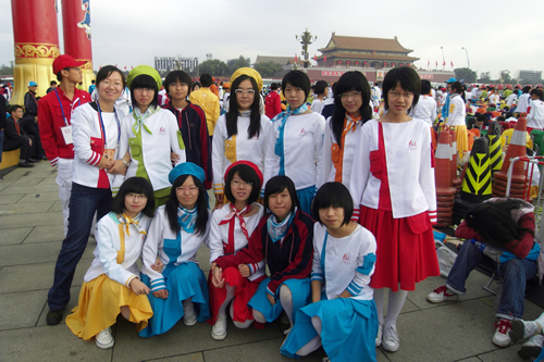 2009年10月1日上午,优米软件下载方法国庆庆典中心区背景表演大队共计师生751人,在刘沪校长、梁原草副校长、许建勇副书记的带领下来到天安门广场参加新世纪首次国庆盛大阅兵仪式。我校与全市270所中小学,8万多名学生共同承担背景方阵表演。组字包括“中华人民共和国万岁”“中国共产党万岁”“人民万岁”“社会主义好”等;图案包括金黄色麦田、五星红旗、盛开的牡丹、长城、和平鸽等;并协助完成巨幅国画《江山如此多娇》的展示。同学们近乎完美的表现,获得了国庆庆典指挥部的高度赞扬。