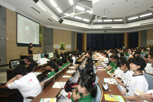 活动当天,所有参与活动的同学都身着根与芽与亚洲动物基金赠送的文化衫。活动开场,身穿可爱月熊服装的高三学长来到场内与同学们进行亲密互动;亚洲动物基金会高级教育主管Jacky向同学们讲述了亚洲动物基金保护黑熊的故事和经历,并带领同学们当场制作了月熊玩具。同学们做成的新颖玩具以及全校师生抵制熊胆制品的签名都赠送给了根与芽北京办公室。