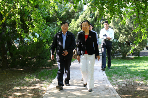 2011年5月10日下午,西城区王粤副区长、区教委赵蓬欣副主任、大栅栏街道艾丽书记,以及市规划委员会西城分局领导等来我校进行调研。刘沪校长介绍了我校基本情况和办学特色,李敏副校长汇报了我校校园工程建设情况和遇到的问题。王粤副区长现场办公,积极为我校排忧解难,并对我们提出希望:师大附中要继续发扬百年老校的优势,在同行中起到更好的引领和示范作用,为促进西城区教育均衡发展发挥更好的作用。会后,王粤副区长一行在刘沪校长陪同下参观了我校的文化设施――老校门、林砺儒校长像、中国古代文化研修室、鲁迅文学研修室、钱学森纪念馆、少年钱学森铜像。领导对我校通过各种形式践行“全人格、高素质”的教育理念表示充分肯定。