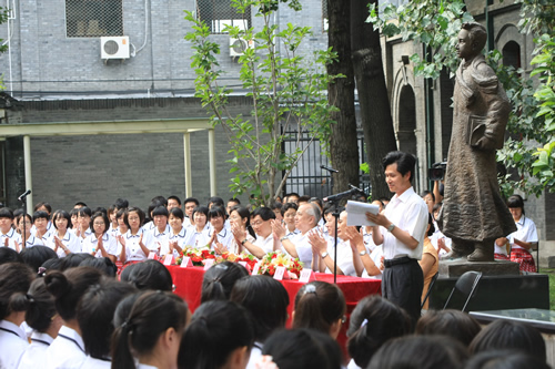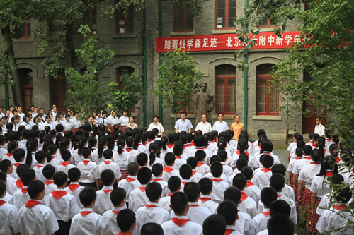 今年,正逢我校成立110周年和我国著名科学家、我校杰出校友钱学森学长诞辰一百周年。9月1日上午,我校以“踏着钱学森足迹”为主题的新学年开学典礼,在校园内“附中人钱学森”铜像前隆重举行。 开学典礼在庄严的国歌声中开始,刘沪校长在新学期致辞中希望全体同学继承传统、努力学习,做“全人格、高素质”的附中人。