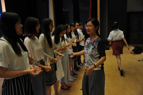 大会上,19位区教育系统优秀教师、优秀教育工作者和2个优秀集体以及5位优秀班主任登台领奖。王莉萍校长、许建勇书记、顾咏梅副校长、李林英书记、李华艳副书记、冯健校长助理、况莉校长助理、徐兰校长助理为从教十年、二十年、三十年、逾三十五年以及班主任龄二十年的37位教师分别颁发了“亭亭如盖”、“花开正红”、“硕果累累”、“桃李天下”“大爱丹心”等从教纪念章。王莉萍校长和况莉校长助理还为“廿载耕耘 不忘初心”班主任龄逾二十年的班主任颁发了西城区表彰的纪念奖牌。