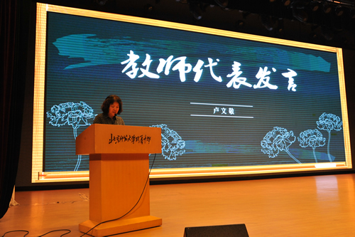 教师的善良,让山水大爱无声;教师的无私,让历史广博厚重;教师的磊落,让人生襟怀坦诚!优秀教师代表、AP年级组长、从教三十年的卢文敬老师做了精彩的发言。卢老师分享了自己人生历经的33个教师节的不同感悟,用幽默的语言描述着自己从一名新教师的安静腼腆、勇于进取到逐步成为一名诲人不倦、桃李天下的优秀教师的教育教学经验。