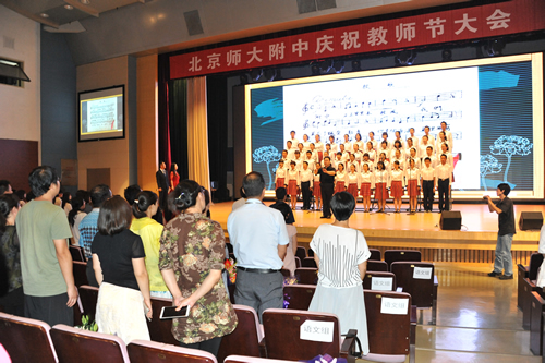 大会在舞蹈团表演的大漠敦煌舞蹈《遇见》中开始,结束于合唱团献给教师们的《红旗》歌曲声中。教育是教师们的共同事业,附中是附中人的共同家园。一辈辈附中的教师引领着教育教学的不断探索,让我们砥砺前行,不断努力,以实际行动成为延续附中百年风华“梦之队”的“筑梦人”。