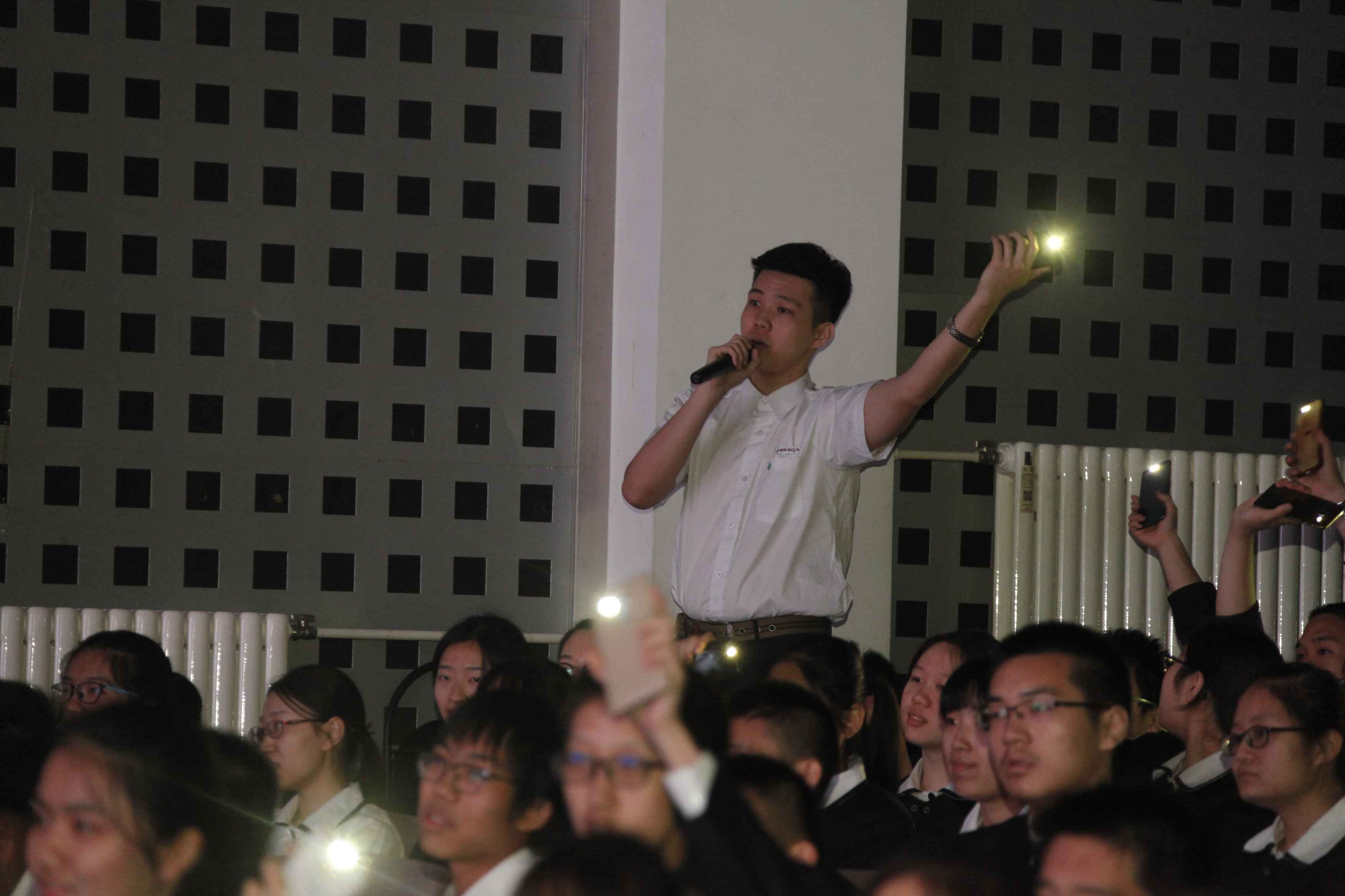 一首“成都?附中版”表达出同学们对附中及老师们深深的感激与眷恋。“你教会我诚爱勤勇,我会用真心去感受”,道出了所有同学的心声。大家纷纷举起手中的手机,亮起银白色的灯光,随着节奏缓缓挥舞,汇聚成了一片星光的海洋。