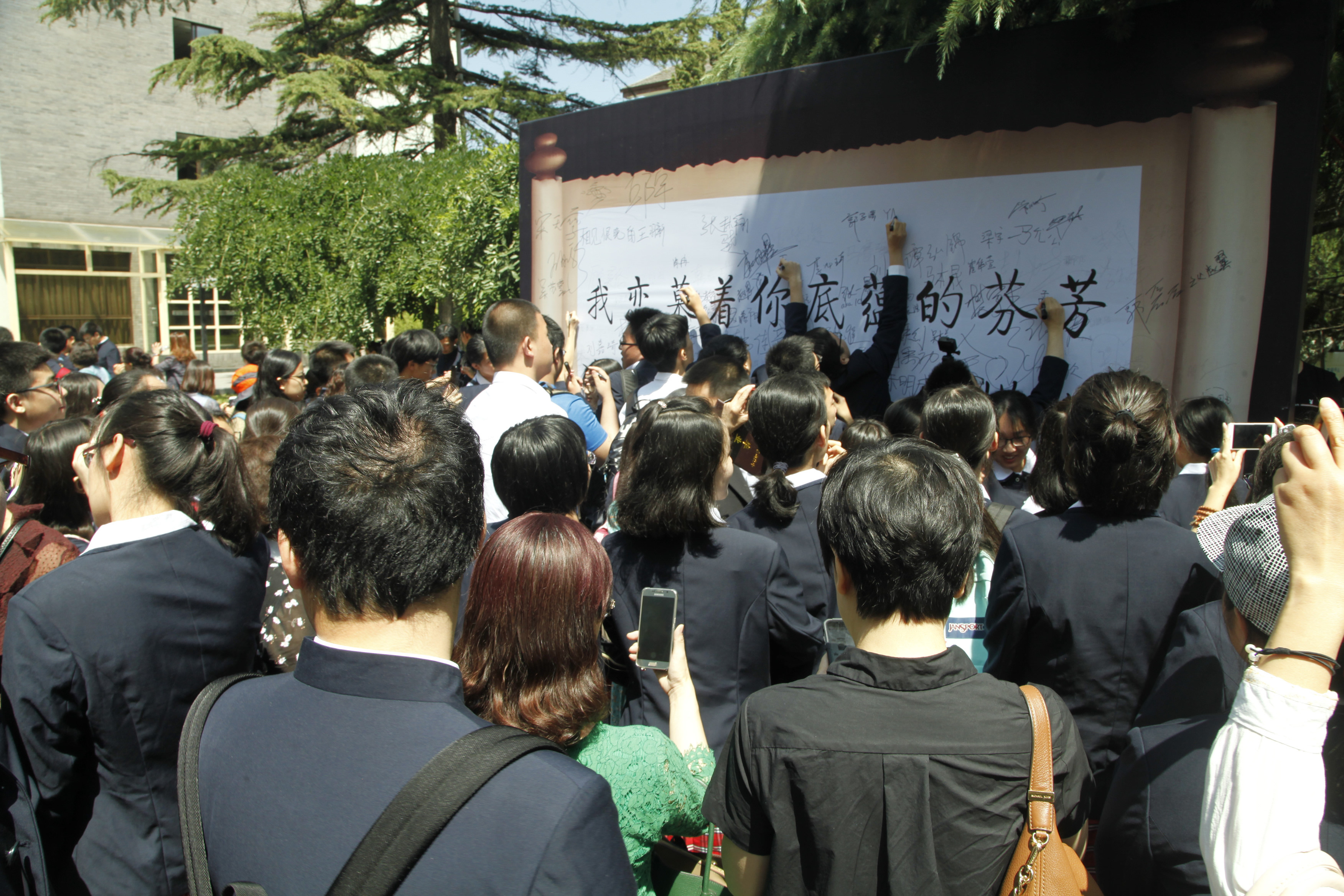 毕业典礼在悠扬的校歌中结束。全体2018届高三毕业生,将遵循“诚爱勤勇”的校训,如校歌中所说那样“努力读书和做工”,将附中珍藏在心,大踏步地迈向广阔的未来。