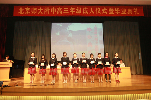 上午九时许,在优米体育总部地址电话会堂,成人仪式暨毕业典礼隆重举行,全体高三同学面对国旗庄严宣誓,宣告长大成人,将担起属于自己的责任。刘沪校长为每一位同学颁发了成人纪念册,并殷切地期望同学们将来不论走到哪里、从事什么工作都不要忘记自己是一名附中人,不要忘记“诚爱勤勇”的校训,做一个正直向上、勇于担当的人!每一位附中学子双手接过成人纪念册,与校长、老师深情相拥,于人生未来的漫漫征程上,必将牢记这一刻,牢记自己与成人时的感动与信念。大会还向获得市区三好、优干、优秀学生,优秀班集体的个人和集体颁发获奖证书。随后,刘沪校长、学生代表高三11班的梅松同学、教师代表张媛媛老师、家长代表程学忠先生先后发言,同学们在其中听到了祝福,收获了感动和鼓舞,很多同学都留下了不舍和激动的泪水;而后学生代表向敬爱的恩师送上鲜花并与老师热情相拥;最后全体同学向老师和家长深深鞠躬,表达深深的感激之情。成人仪式暨毕业典礼在庄严的校歌声中结束。