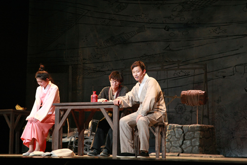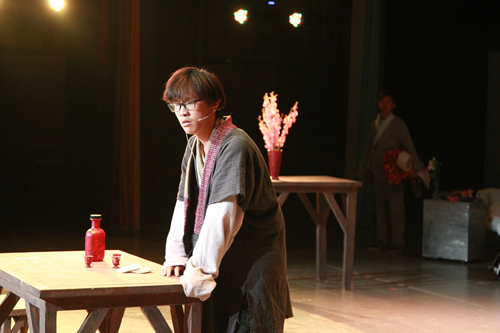 这次的《暗恋桃花源》与赖声川的经典版有些不同,在演出开始前的半个小时,就有许多演员在台上台下的穿梭了。像是排练一样,有人喊着要吃饭,有人却坐在台上玩着手机,甚至演出开始了,场灯都没有关,一小段内容愣是在现场演了三遍,简直让观众摸不着头脑。正当“排练”进入正轨时,《桃花源》剧组闯了进来,于是,抢剧场真真实实的发生了。是的,有人一不小心安排了两个剧组在今天晚上同时做舞台合成,《暗恋》与《桃花源》就这样交错上演了。