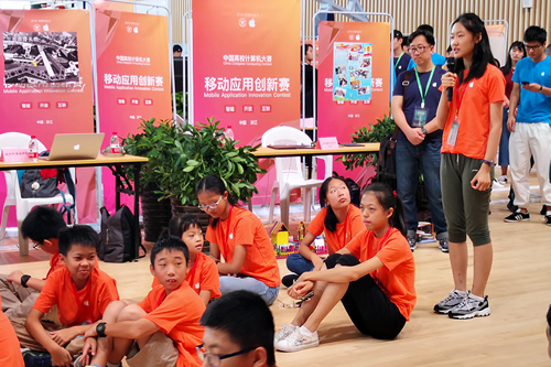 本次比赛除了有来自全国高校团体的正式比赛,还同步举办了由国内部分中小学团体参加的“Swift Playgrounds展示交流活动”,借助Apple专门针对零编程基础用户推出的Swift Playgrounds编程工具以及其他第三方道具(例如无人机、机器人),以场景化的方式展示如何用编程解决实际问题。