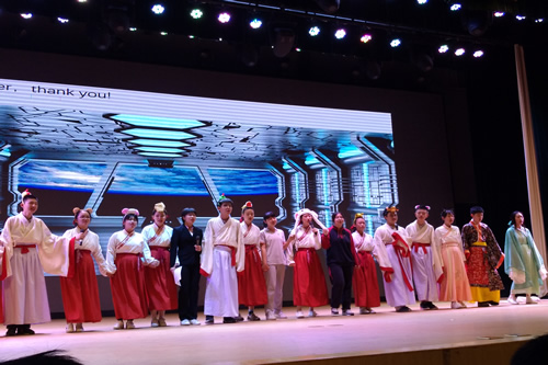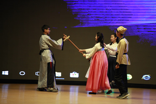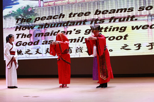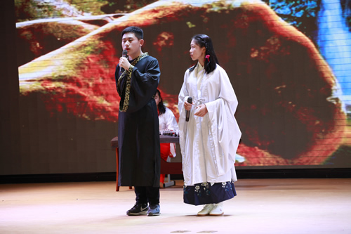 活动主持人包括了来自东西方不同国家的学生,他们分别用中英文反串主持,给观众带来耳目一新的感觉。汇演节目形式多样,既有话剧,小品,歌曲等传统艺术形式,也有歌舞说唱,英文京剧等创新形式。汇演伊始,歌曲《这里是中国》壮吾华夏之魂展现民族自信,话剧《十二宫廷侍卫》再展中国古代智慧;京剧《苏三起解》熔铸坚持正义之精神,而《愚公移山》则展现不畏艰难之胆魄;朗诵《桃花源记》吟诵出归隐之美。话剧《诗经》娴静纯美,歌曲《青花瓷》悠然静远;话剧《中国传统节日》热烈纯真,歌舞《水调歌头》吟锁离愁。由13班同学出演的京剧《霸王别姬》以京剧与英文结合,构思大胆,让同学们领略到京剧梅派艺术与英语结合的那一抹惊艳。