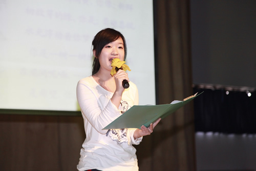 2012年3月30日星期五,高一年级全体学生在礼堂举办了“点亮心灯”主题新诗朗诵会。朗诵会根据学生选材分为三个主题:“我爱你中国”、“心灵的吟唱”、“我思故我在”。