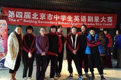 此竞赛由北京市教委、北京市国际教育交流中心、北京电视台青年频道、北京市青少年音像出版社主办,各区县教委承办,并由北京市民讲外语组委会主持。在往年的基础上,本次大赛今年受到了各区县教委和学校的高度关注,报名人数创历史新高,共有来自13个区县80多所学校的千名师生报名参加。其中,初中组配音比赛共有来自北京市10个区50多所学校的60个节目报名参加,参与师生数500余人;高中组英语戏剧比赛共有来自北京市13个区30多所学校的42支队伍报名参加,参与师生400多人。例如:北京四中、北京八中、师大附属实验中学、人大附中等等均有代表队参加,其中很多代表队还有一定数量的有外籍学生参与。我校代表队虽然不具备这项优势,但是在全体初二英语组教师的努力和年级电影配音活动的海选下、尤其是在李学珍老师的精心雕琢和训练下,参赛同学的英文表达水平、语言表现能力、人物声音定位等方面得到了显著提高。并且在竞赛当天,学生们充分发挥才艺,配以现场笛子演奏、电影曲目演唱等形式,将原电影音效果模仿得淋漓尽致,从而在众多竞争之中脱颖而出。学生的精彩表演不仅得到了在场评委和参赛选手的赞誉,也同时在比赛的第二天作为唯一一张图片新闻刊登在北京青年报上并转载于网络中,为学校赢得了荣誉。当然,这一成绩的取得也与刘晓杰老师在这一过程中一直不断给与的技术支持密不可分,初二英语备课组在此特别表示感谢!