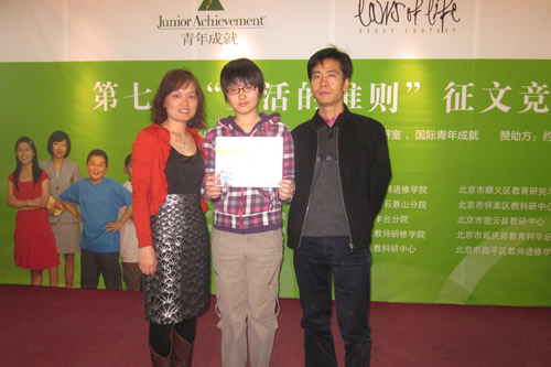 2011年《生活的准则》征文竞赛,北京地区十七个区县,五百多所学校,三十余万名中、小学生参加比赛,我校政治教研组获得含金量最高的最佳组织奖,高二(11)班范鸿仪同学获得高中组征文一等奖。2011年4月9日,政治教研组胡莹老师、王斌老师与范鸿仪同学及其家长参加了颁奖典礼。