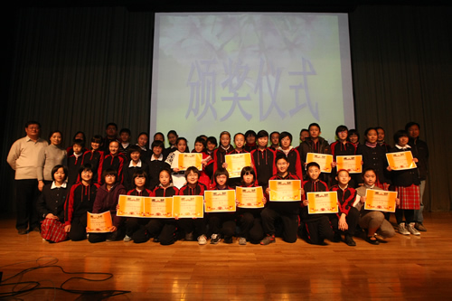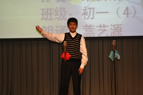 更加令人振奋的是,参赛节目表演完毕后,全体起立,齐颂《春江花月夜》,气势宏伟,余音不绝。这极大地调动了同学们对朗诵的兴趣和热情。