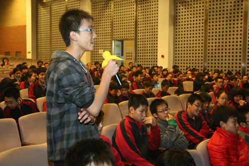 2010年11月30日,在初二年级研究性学习备课组邀请下,中国地震局徐德诗研究员为我校初二年级全体同学做了《你做好灾害应急准备了吗?》的报告。本报告以大量自然灾害给人类社会造成的巨大损失及人类与自然灾害抗争的事实,特别是2008年5月12日汶川地震震惊寰宇的灾难和中国人民众志成城、抗震救灾的壮丽篇章,给出如何认识灾害、了解灾害和应对灾害的思路和措施――学知识、立意识,勤参与、增能力,为应对灾害作好准备。