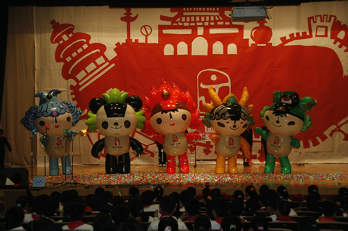 这是一个宣传和普及奥林匹克知识,弘扬奥林匹克精神的活动。这是初一年级全体师生期盼2008年北京奥运会召开,祝福2008年北京奥运会圆满成功的活动。《中国教育报》全程采访了活动。