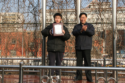 2009年1月4日,我校2007-2008学年“校友奖学金”颁奖仪式在新年第一次升旗仪式上举行。王莉萍副校长简要介绍了校友奖学金的由来、奖励范围及奖励办法,并宣读了获奖学生名单;刘沪校长等校领导为获得该学年一等奖学金的37名学生颁奖。在本次颁奖仪式中,学校特别为获得北京电视台“SK状元榜”2008年度总季军的张恒熠同学授予“附中博学之星”称号,并赠牌予以留念。