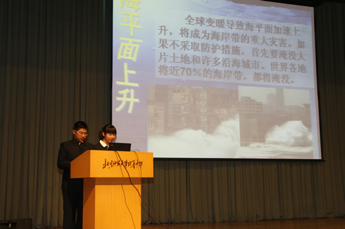 会上,同学们展出了精心制作的35块科普展板,并有24名同学代表分别进行了主题为“我们的草原怎么了?”、“该给地球退烧了”、“我们向往的宇宙”的演讲汇报。学生代表们用自信流畅的表达和声情并茂的讲述,给在场观众上了一堂生动的科普课,同学们反响热烈,现场气氛活跃。