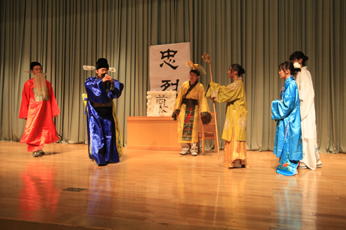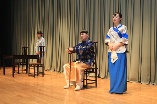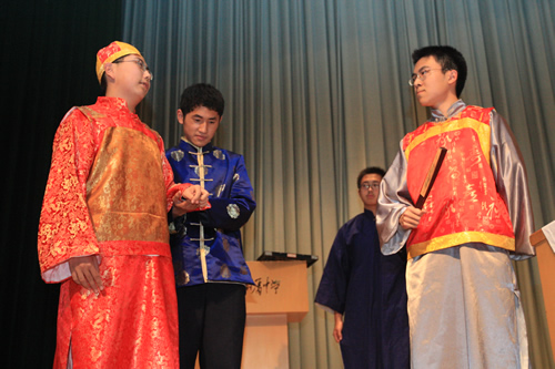 举办话剧节是师大附中的优良传统。梁原草副校长认为,话剧是世界文化艺术的瑰宝,采用举办话剧节的方式引导学生品评鉴赏并进行艺术实践,可以丰富学生的文学素养,提高审美水平;可以活跃学校的文化氛围,促进优良校风的形成。本届话剧节历时两周,由高二年级承办。为办好这项具有重要意义的活动,高二语文组进行了精心策划。在教师指导下,同学们精心选择表演剧目,精心设计表演形式,精心营造表演氛围,出现了许多感人的情景。5月26-27日,初演活动成功举办,二(2)《疯娘》、二(1)班《杨门女将》、二(9)班《茶馆》等七个剧目被评为优秀剧目。6月3日展演,杨高雅、丁伊宁、任文正等十名同学被同学们评选为优秀演员。梁原草副校长、许建勇副书记为获奖剧目和演员颁奖。