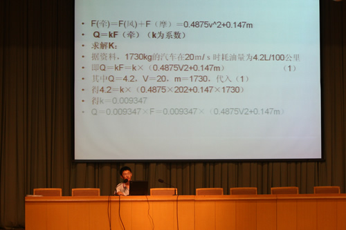 原高一10班的王宁介绍他们对汽车油耗的研究